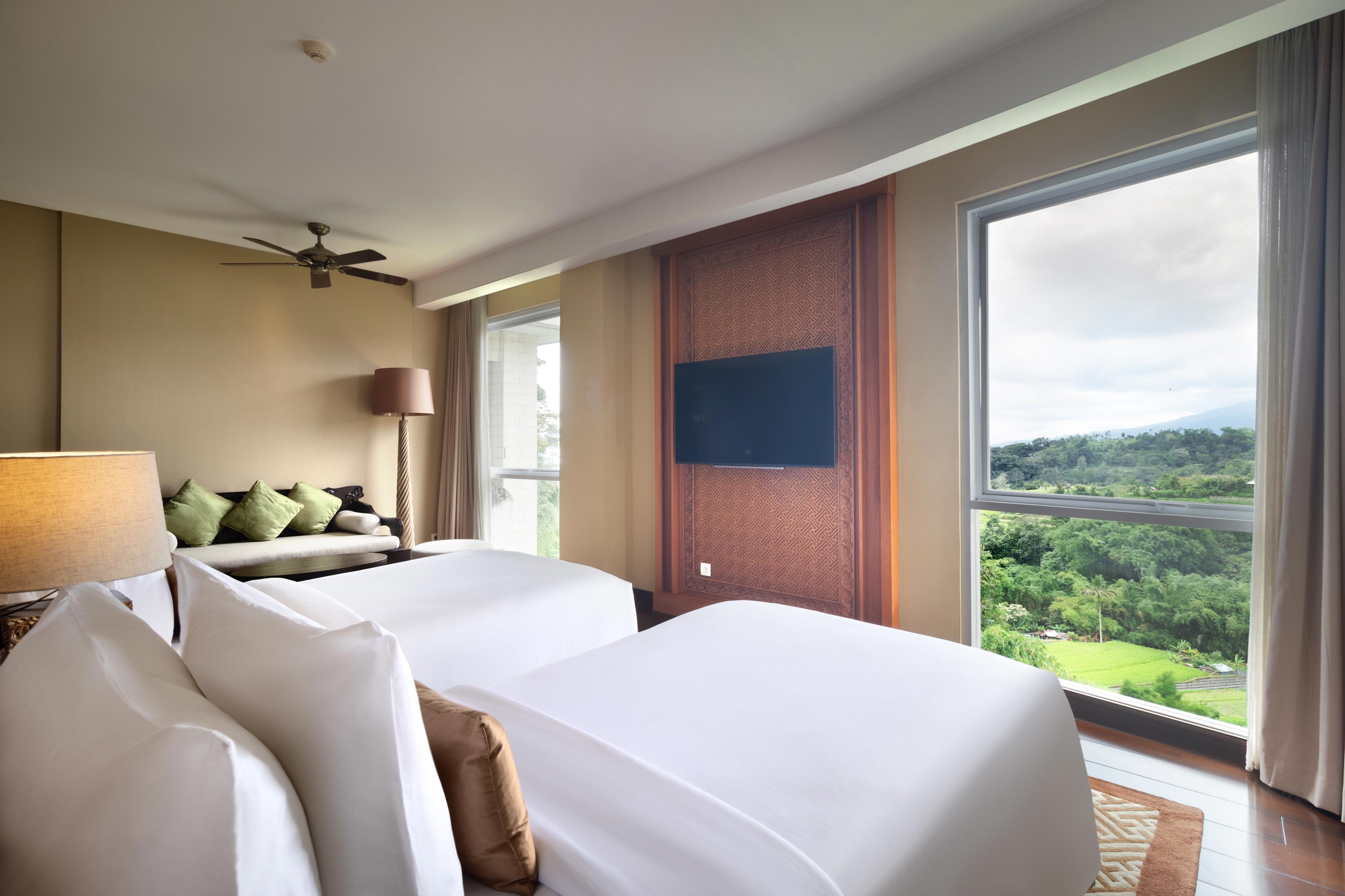 Embrace refined living in our One Bedroom Suite, thoughtfully designed for discerning travellers seeking both space and elegance. The suite features a generously sized bedroom with a king bed, complemented by an ensuite bathroom complete with a bathtub for moments of relaxation. Facing Mount Batukaru, Mount Pohen and Mount Sanghyang, the suite immerses you in the natural beauty of Bali’s central highlands. Located on the second floor of the main building, this suite captures the essence of a highland lifestyle of serene, elevated and unforgettable.